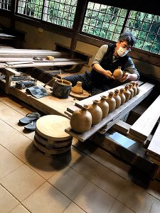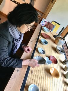 その後、昨日とは又違う窯元・中里嘉考氏の工房へ。わくわくしながら器を拝見すると、色々な創造力がMAXにパワーアップされる。作り手の方との話の中でも、その想いと自分の料理人としての想いが重なってくる。