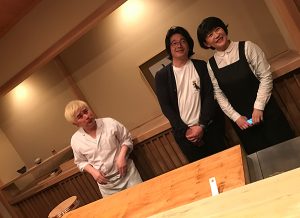 ぎんすしの器は全て先ほど伺った、中里隆氏の作品。一つ一つのお料理がより美しく盛られ、全ての五感で僕たちを迎え入れていただいた夕食でした。本当に落ち着きながら、ゆったり食事が出来るすてきな空間で、楽しいひと時と美味しいお鮨をいただきました。オーナーのぎんちゃんこと阿部展久大将ありがとうございました。