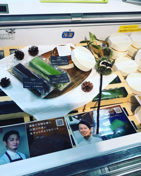 (物販商品 ブーダンテリーヌ・ド・ショコラ:大澤、八女茶のチーズケーキ:塩崎、栗のバスクチーズケーキ:田代→こちらはTOYO onlineにてご購入いただけます https://restaurant-toyo.online/collections/sweets