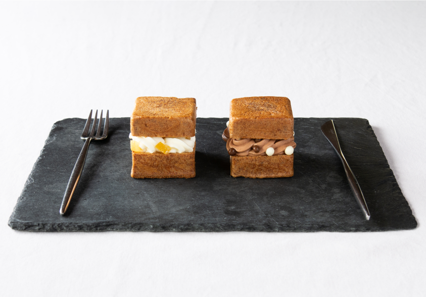 フランス産のハイカカオチョコレートを軽い口当たりのムースにしサンドしました。