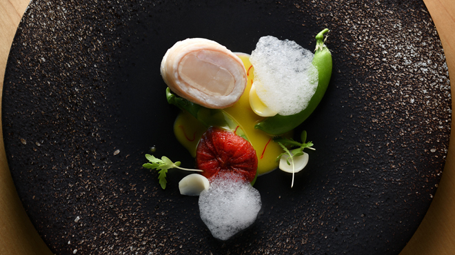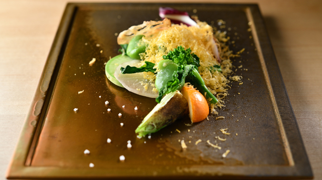 西洋と東洋の融合。日本人としての文化・伝統的な美意識を持つシェフ・中山豊光の持つ感性というフィルターを通し、一つ一つのお料理を丁寧に繊細に創り出します。